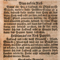 Kleisterpapierrezept aus J. C. G. (1752). Die rechte und wahrhafte Färbe-Kunst, S.225 (Foto: Digitalisat http://mdz-nbn-resolving.de/urn:nbn:de:bvb:12-bsb11110241-0).